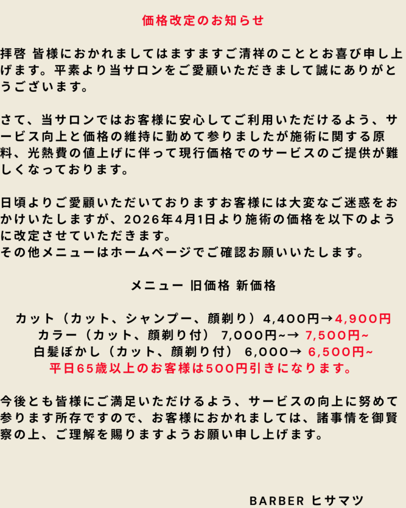 価格改定のお知らせ